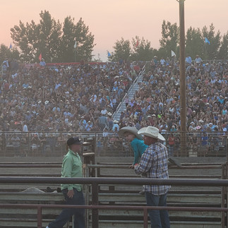 Saturday night we had tickets for the 75th Annual Three Forks Rodeo, which was about three miles from the campground. We parked far and walked, but avoided the traffic. On a sidenote, we were walking back to the truck and a lady working the gate gave Beau her last beer. Something little, but so nice. I digress. I have never been to a rodeo, so this was a real treat for me. Bonus...we seated ourselves on the gates near the bull and cow pens, so I got the up-close version, and got to watch the cowboys manage the bulls. Cool stuff!!